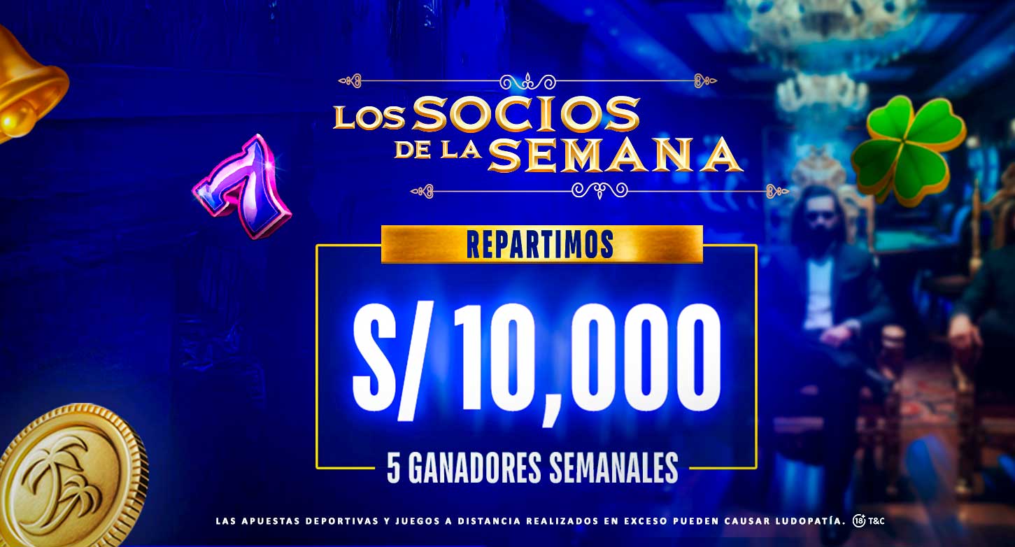 Te traemos Los socios de la semana, promoción semanal donde los jugadores que acumulen S/200k en slot entran a un sorteo que reparte S/10,000.